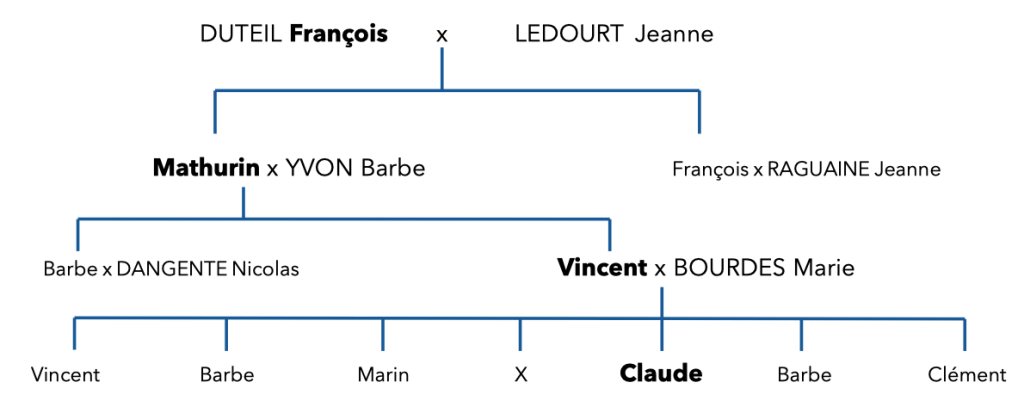 Chez les Duteil aussi, la vie continue. Vincent, comme ses aïeux, devient vigneron. Le 2 novembre 1624, il épouse à Egly Marie Bourdes, une jeune femme originaire de Bernay, un petit village de Normandie situé entre Caen et Alençon.