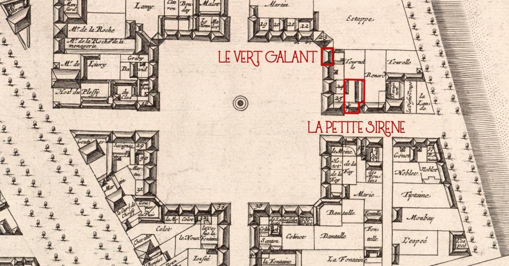 C’est sur la grande place du marché que Louis installe son commerce, qu’il nomme « Le vert galant », surnom donné jadis au roi Henri IV, et situé seulement à quelques maisons de la Petite Sirène de François Frichot.