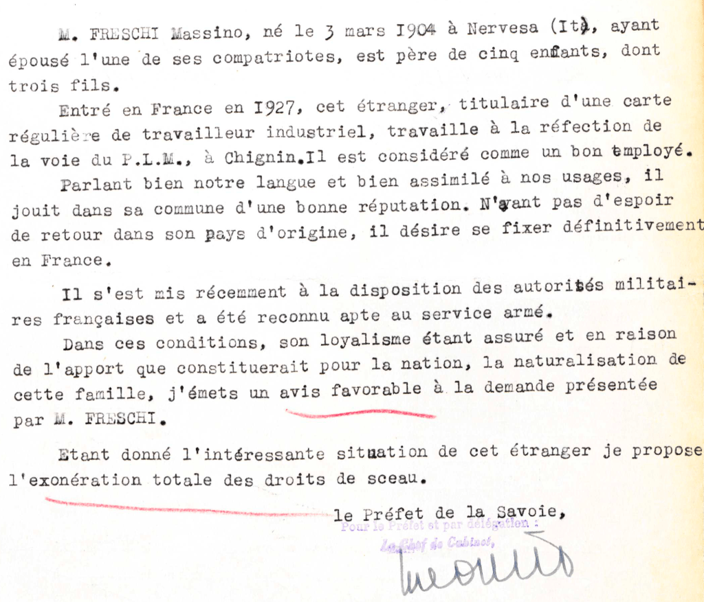 Extrait du dossier de naturalisation des Freschi – Archives Nationales – dossier n°26017X39 / 19770900/288
