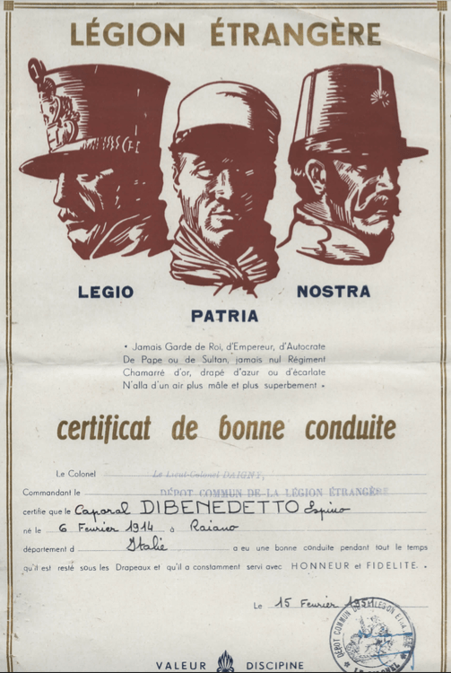 Le certificat de bonne conduite d’Erpino – Archives Légion étrangère