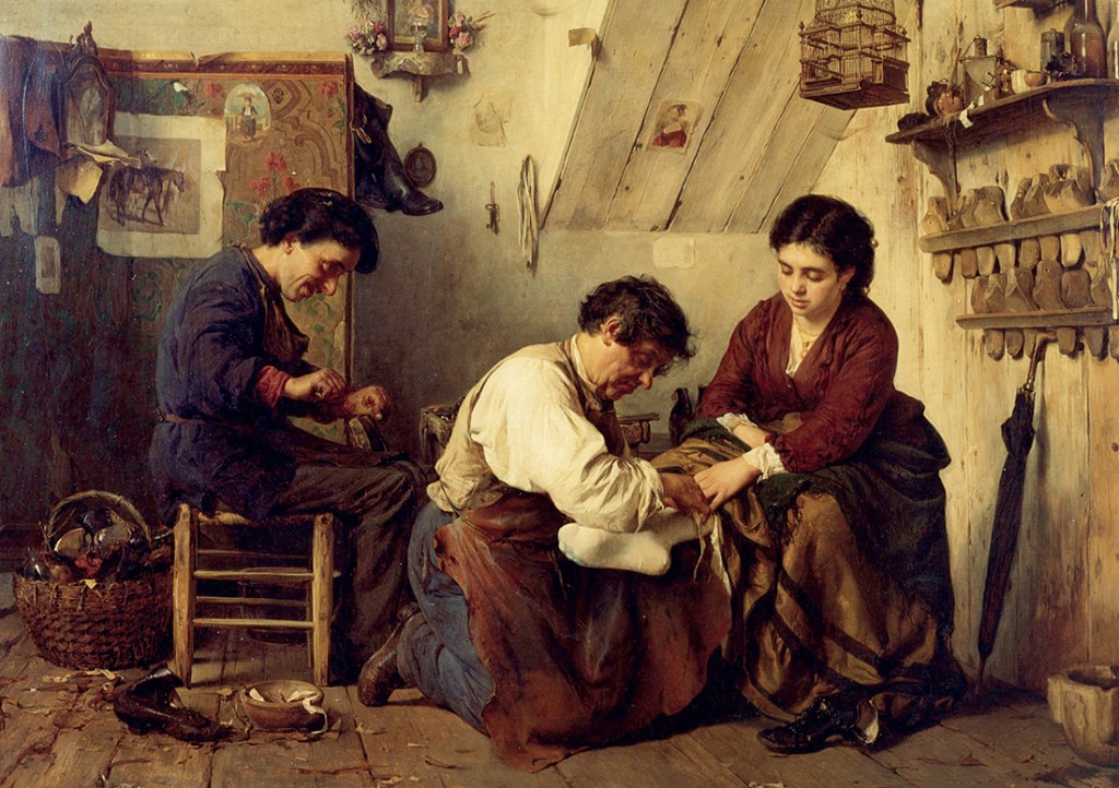 Car réussir à faire vivre la famille n’est pas simple. Benvenuto s’absente régulièrement de la maison pour aller travailler dans les grosses fermes des environs. Il peut y passer plusieurs jours, à raccommoder et rapiécer toutes les chaussures du foyer dans lequel il s’est installé. En guise de salaire c’est rarement de l’argent qu’il reçoit et il est surtout payé en nourriture : un peu de viande, des légumes, des fruits, des oeufs… Mais sur place, il est nourri et logé, alors dès qu’il le peut il emmène avec lui l’un de ses enfants qu’il fait passer pour son apprenti et qui pourra manger à sa faim pour quelques jours.