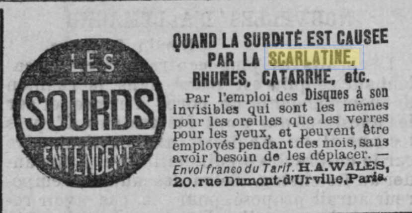 Réclame pour un dispositif correcteur de surdité – Le Messager du midi – 21/03/1890 – Gallica